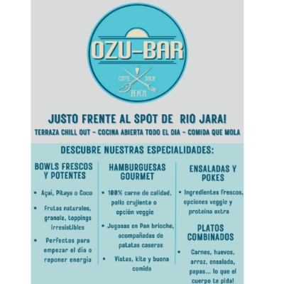 Welcome to OZU BAR Tarifa, a charming breakfast haven located on the scenic N-340 highway, just a stone's throw from the beach in Tarifa, Cádiz. This delightful eatery specializes in homemade burgers crafted with the freshest local ingredients, ensuring every bite is burst with flavor and quality. Patrons rave about the stunning selection of dishes, from juicy, handcrafted burgers to refreshing smoothie bowls that cater to all tastes, including vegan options.